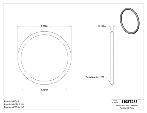 DuPont Kalrez 6375, 1/8 (3.17 mm) Kesirli Genişlik, Dash #226