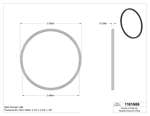 Bu O-ringler, X profilli O-ringlerden daha iyi sızdırmazlık için sekiz temas noktasına sahiptir ve sürtünmeyi azaltıp ömrü uzatmak için yağlayıcı tutan sekiz oluğa sahiptir. Esnek ve mükemmel yırtılma direnci sunan Buna-N malzemeden üretilmiştir. Grese, hidrolik yağlara ve motor yağına dayanıklıdır. SAE AS568 standardına göre boyutlandırılmıştır.