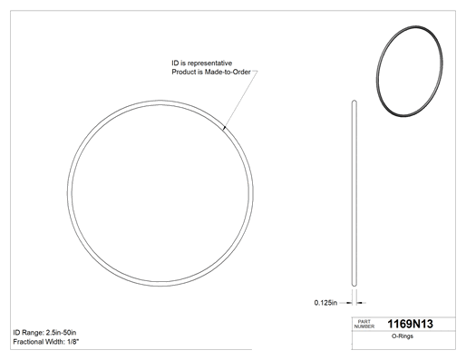 Yağa Dayanıklı Buna-N, 1/8 (3.17 mm) Kesirli Genişlik, 0.125" (3.17 mm) Gerçek Genişlik