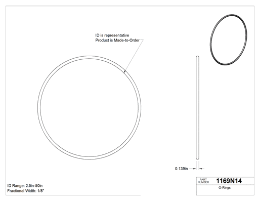 Yağa Dayanıklı Buna-N, 1/8 (3.17 mm) Kesirli Genişlik, 0.139" (3.53 mm) Gerçek Genişlik