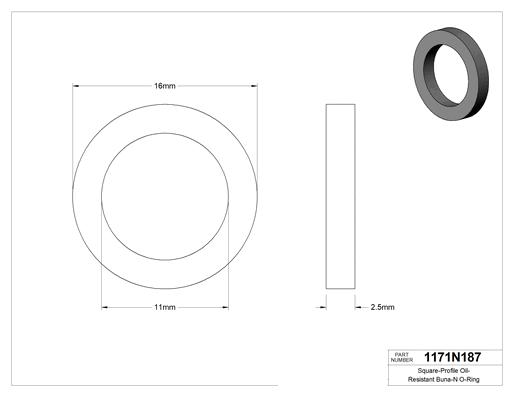 Dört tarafı da düz kenarlı olan bu O-ringler, yuvarlak profilli O-ringlerden daha geniş yüzey alanıyla temas eder. Artan temas, hortum, boru ve musluk bağlantıları gibi statik uygulamalarda daha iyi sızdırmazlık sağlar. Ancak düz kenarlar daha fazla sürtünmeye ve aşınmaya neden olduğu için dinamik uygulamalarda o kadar iyi bir tercih değildir. Buna-N malzemeden üretilmiş olup yırtılmaya dayanıklıdır ve hidrolik ile motor yağlarına dayanır.