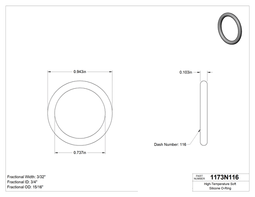 3/32 (2.38 mm) Kesirli Genişlik, Dash Numarası 116