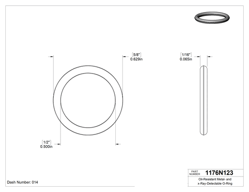 Buna-N, 1/16 (1.59 mm) Kesirli Genişlik, Dash Numarası 014