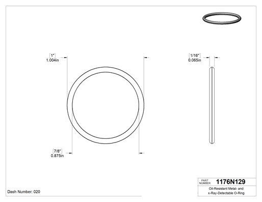Buna-N, 1/16 (1.59 mm) Kesirli Genişlik, Dash Numarası 020