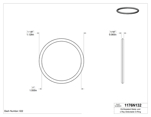 Buna-N, 1/16 (1.59 mm) Kesirli Genişlik, Dash Numarası 022