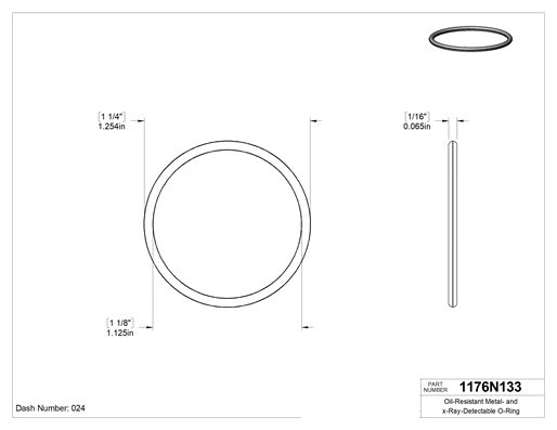 Buna-N, 1/16 (1.59 mm) Kesirli Genişlik, Dash Numarası 024