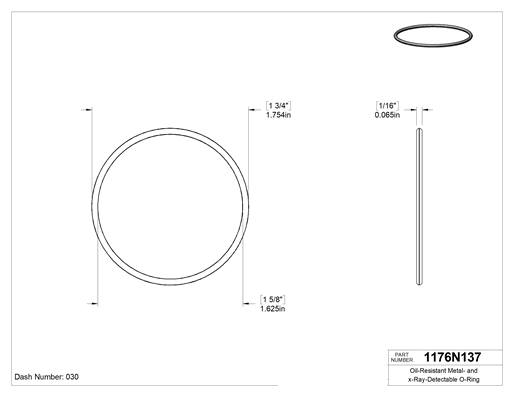 Buna-N, 1/16 (1.59 mm) Kesirli Genişlik, Dash Numarası 030