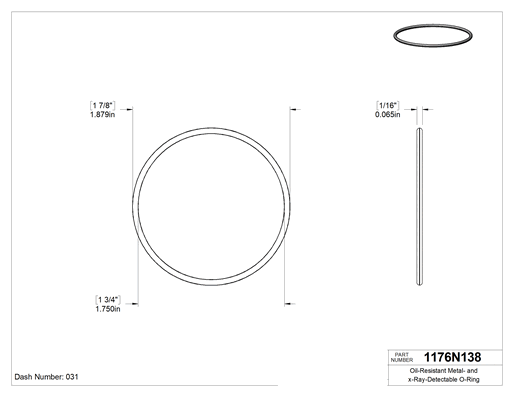 Bu O-ringler bozulursa metal ve röntgen algılama sistemleri tarafından tespit edilir. Buna-N kauçuktan üretilmiş olup yaygın yağlara, yakıtlara, grese ve hidrolik ile motor sıvılarına dayanıklıdır. FDA uyumlu malzemelerden üretildikleri için genellikle gıda uygulamalarında kullanılır ve hayvansal yağ, bitkisel yağ ve su ile kullanıma uygundur. Ayrıca mükemmel yırtılma direnci sunar. Tümünün ambalajında raf ömrü, kürleme tarihi ve izlenebilir lot numarası basılıdır.