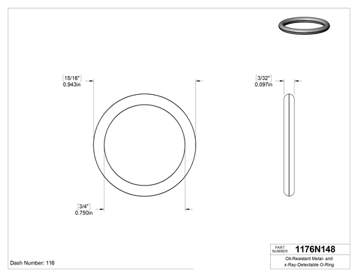 Buna-N, 3/32 (2.38 mm) Kesirli Genişlik, Dash Numarası 116