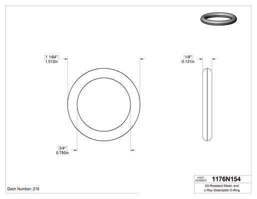 Buna-N, 1/8 (3.17 mm) Kesirli Genişlik, Dash Numarası 210