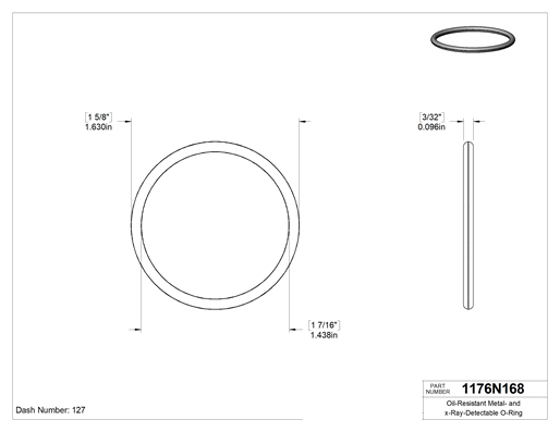 Buna-N, 3/32 (2.38 mm) Kesirli Genişlik, Dash Numarası 127