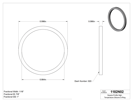 Silikondan üretilen bu O-ringler 400° F'a kadar sıcaklıklara dayanır. Dört tarafı da düz kenarlı olduğundan, yuvarlak profil O-ringlara göre daha fazla yüzey kaplar. Bu sayede hortum, boru ve musluk bağlantıları gibi statik uygulamalarda daha iyi sızdırmazlık sağlar. Tümünde poşet üzerinde raf ömrü, kürleme tarihi ve izlenebilir lot numarası basılıdır.