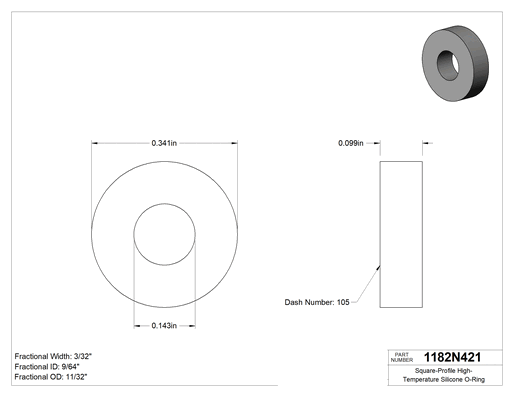 Silikondan üretilen bu O-ringler 400° F'a kadar sıcaklıklara dayanır. Dört tarafı da düz kenarlı olduğundan, yuvarlak profil O-ringlara göre daha fazla yüzey kaplar. Bu sayede hortum, boru ve musluk bağlantıları gibi statik uygulamalarda daha iyi sızdırmazlık sağlar. Tümünde poşet üzerinde raf ömrü, kürleme tarihi ve izlenebilir lot numarası basılıdır.
