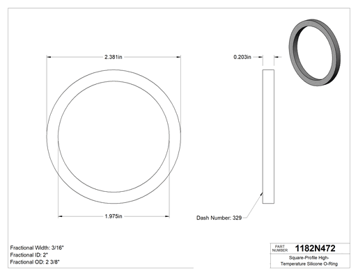 Silikondan üretilen bu O-ringler 400° F'a kadar sıcaklıklara dayanır. Dört tarafı da düz kenarlı olduğundan, yuvarlak profil O-ringlara göre daha fazla yüzey kaplar. Bu sayede hortum, boru ve musluk bağlantıları gibi statik uygulamalarda daha iyi sızdırmazlık sağlar. Tümünde poşet üzerinde raf ömrü, kürleme tarihi ve izlenebilir lot numarası basılıdır.