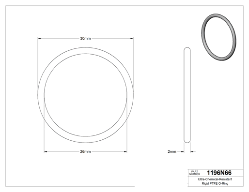 PTFE'den üretilen bu O-ringler aşırı sıcaklıklara ve aseton, florlu çözücüler ve etanol gibi agresif kimyasallara dayanır. Ayrıca serttir, bu da esnek O-ringlere göre montajını zorlaştırır. Bu O-ringler genellikle pompa milleri, karıştırma tankları ve kimyasal veya ilaç işleyen diğer ekipmanların sızdırmazlığında kullanılır. Ayrıca gıda ile doğrudan temas için FDA uyumludur. Tümünde kürleme tarihi ve izlenebilir lot numarası ambalajda yazmaktadır.