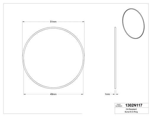 Buna-N malzemeden üretilen bu O-ringler grese, hidrolik yağa ve motor yağına, ayrıca hafif kimyasallara ve suya dayanıklıdır. Ancak Buna-N fren sıvısı ile kullanıma uygun değildir. Bu O-ringler genellikle güç iletim montajlarında, hidrolik silindirlerde ve pnömatik silindirlerde iki parça arasında çok yönlü sızdırmazlık oluşturmak için kullanılır. Zamanla şekillerini korumak için sıkışmaya ve yırtılmaya dayanıklıdır. Tümünün ambalajında raf ömrü, kürleme tarihi ve izlenebilir lot numarası basılıdır.
