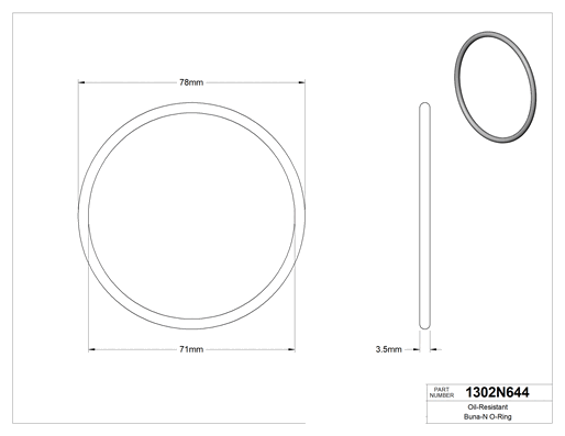 Buna-N malzemeden üretilen bu O-ringler grese, hidrolik yağa ve motor yağına, ayrıca hafif kimyasallara ve suya dayanıklıdır. Ancak Buna-N fren sıvısı ile kullanıma uygun değildir. Bu O-ringler genellikle güç iletim montajlarında, hidrolik silindirlerde ve pnömatik silindirlerde iki parça arasında çok yönlü sızdırmazlık oluşturmak için kullanılır. Zamanla şekillerini korumak için sıkışmaya ve yırtılmaya dayanıklıdır. Tümünün ambalajında raf ömrü, kürleme tarihi ve izlenebilir lot numarası basılıdır.