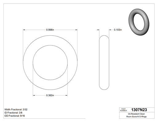 Bu Buna-N O-ringler ISO Sınıf 7 (Fed. Std. 10.000) temiz odada üretilip paketlenmiştir. Gıda ve içecek kullanımı için FDA listesindeki malzemeden üretilmiş olup yırtılmaya, hayvansal ve bitkisel yağlara, sitrik aside, sodyum bikarbonata, grese ve motor yağına mükemmel dayanıklılık sunar. Yuvarlak profile sahiptir ve çok çeşitli statik ve dinamik sızdırmazlık uygulamaları için uygundur. Tümü SAE AS568 standardına göre boyutlandırılmıştır.
