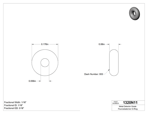 Kimyasala Dayanıklı, 1/16 (1.59 mm) Kesirli Genişlik, Dash Numarası 003
