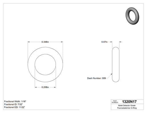 Kimyasala Dayanıklı, 1/16 (1.59 mm) Kesirli Genişlik, Dash Numarası 009