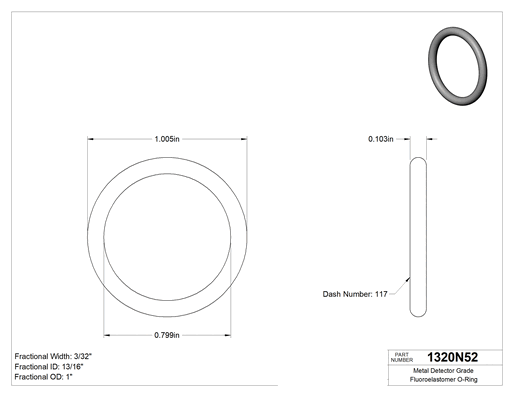 Kimyasala Dayanıklı, 3/32 (2.38 mm) Kesirli Genişlik, Dash Numarası 117