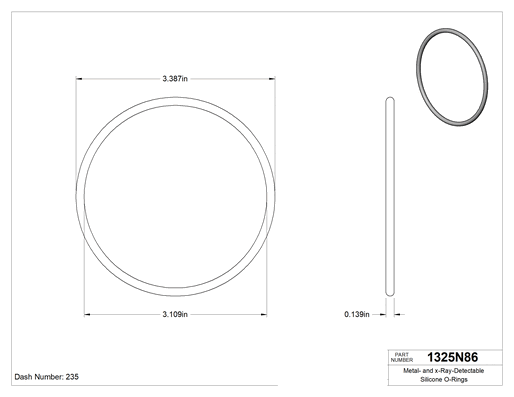 Bu O-ringler bozulup hattınıza düşerse, metal ve X-ışını algılama sistemleri tarafından yakalanır. Silikondan üretilmiş olup 400° F'a kadar ısıya dayanır. Tümü FDA uyumlu malzemeden üretildiğinden, gıda işleme ve ilaç tesislerinde yaygın olarak kullanılır. Bu O-ringler yaygın yağlara, katı yağlara, alkole ve suya dayanıklıdır. Tümünde poşet üzerinde raf ömrü, kürleme tarihi ve izlenebilir lot numarası basılıdır.