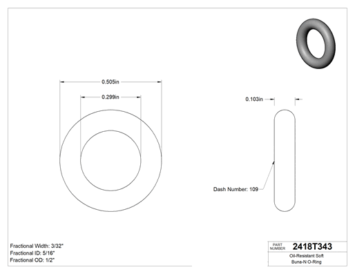 3/32 (2.38 mm) Kesirli Genişlik, Dash Numarası 109