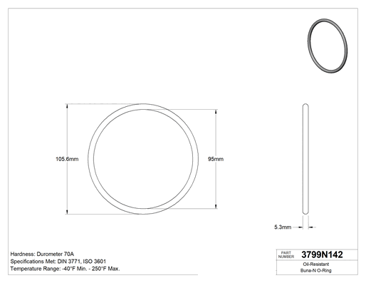 5.3 mm Genişlik, 95 mm İç Çap, 105.6 mm Dış Çap
