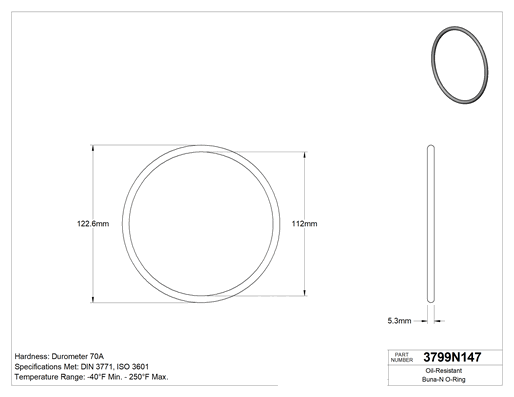 5.3 mm Genişlik, 112 mm İç Çap, 122.6 mm Dış Çap