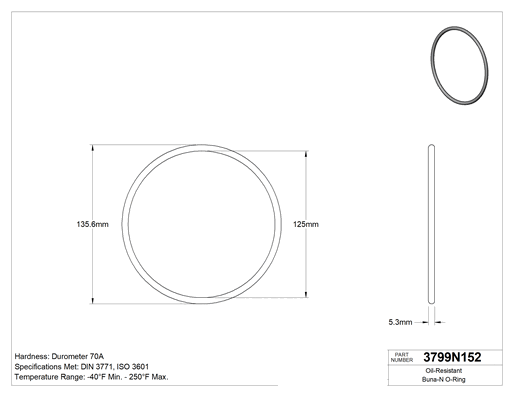 5.3 mm Genişlik, 125 mm İç Çap, 135.6 mm Dış Çap