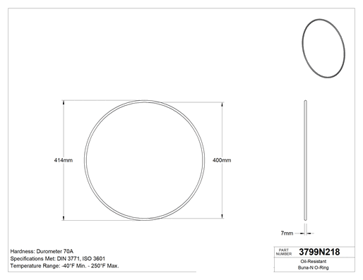 7 mm Genişlik, 400 mm İç Çap, 414 mm Dış Çap