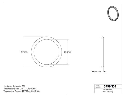 2.65 mm Genişlik, 25.8 mm İç Çap, 31.1 mm Dış Çap