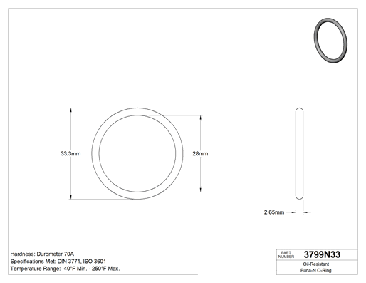 2.65 mm Genişlik, 28 mm İç Çap, 33.3 mm Dış Çap