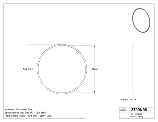 3.55 mm Genişlik, 136 mm İç Çap, 143.1 mm Dış Çap