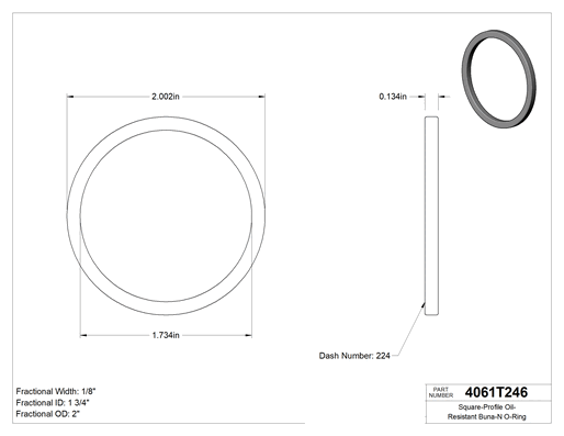 Dört tarafı da düz kenarlı olan bu O-ringler, yuvarlak profilli O-ringlerden daha geniş yüzey alanıyla temas eder. Artan temas, hortum, boru ve musluk bağlantıları gibi statik uygulamalarda daha iyi sızdırmazlık sağlar. Ancak düz kenarlar daha fazla sürtünmeye ve aşınmaya neden olduğu için dinamik uygulamalarda o kadar iyi bir tercih değildir. Buna-N malzemeden üretilmiş olup yırtılmaya dayanıklıdır ve hidrolik ile motor yağlarına dayanır.