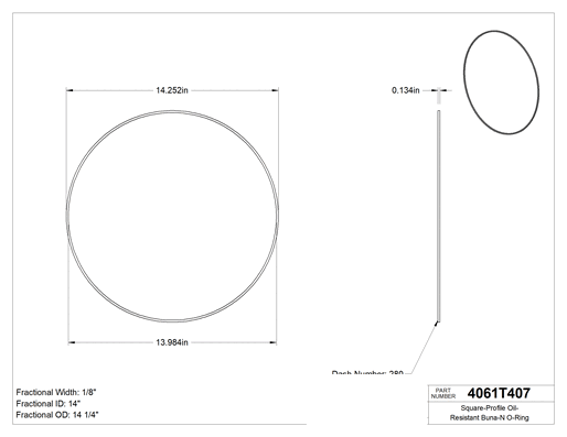 Dört tarafı da düz kenarlı olan bu O-ringler, yuvarlak profilli O-ringlerden daha geniş yüzey alanıyla temas eder. Artan temas, hortum, boru ve musluk bağlantıları gibi statik uygulamalarda daha iyi sızdırmazlık sağlar. Ancak düz kenarlar daha fazla sürtünmeye ve aşınmaya neden olduğu için dinamik uygulamalarda o kadar iyi bir tercih değildir. Buna-N malzemeden üretilmiş olup yırtılmaya dayanıklıdır ve hidrolik ile motor yağlarına dayanır.