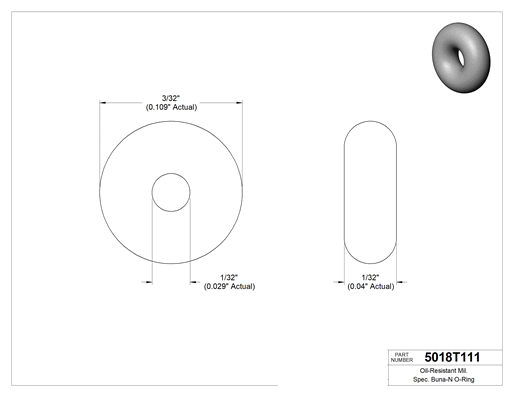 1/32 (0.79 mm) Kesirli Genişlik, Dash No. 001,-20° to 250°F
