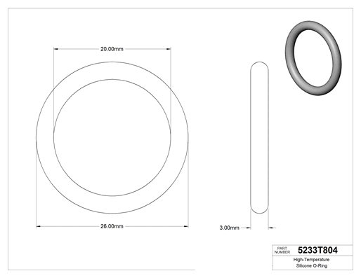 Silikondan üretilen bu O-ringler 400° F ve üzeri sıcaklıklara dayanabilir. Gıda ile doğrudan temas için FDA uyumludur, bu nedenle sıcak gıda hatlarında sıkça kullanılır. Ayrıca HVAC sistemlerinin sızdırmazlığında da kullanılır. Tümünde poşet üzerinde kürleme tarihi ve izlenebilir lot numarası basılıdır.