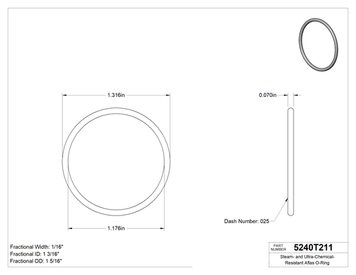 1/16 (1.59 mm) Kesirli Genişlik, Dash Numarası 025