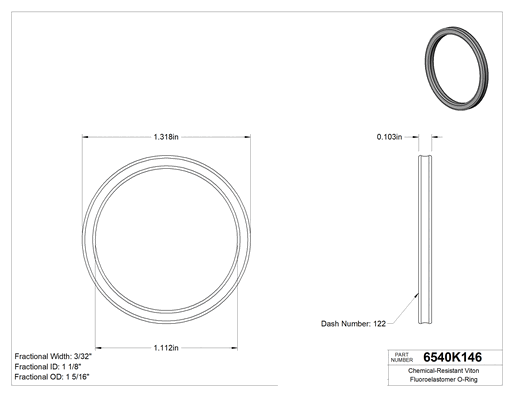 X Profilli, 3/32 (2.38 mm) Kesirli Genişlik, Dash Numarası 122