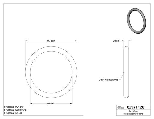 Kimyasala Dayanıklı, 1/16 (1.59 mm) Kesirli Genişlik, Dash Numarası 016