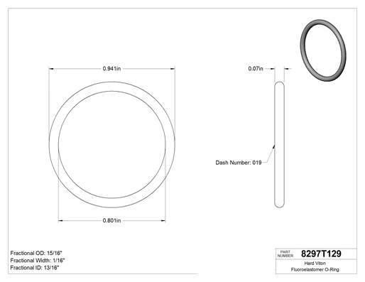 Kimyasala Dayanıklı, 1/16 (1.59 mm) Kesirli Genişlik, Dash Numarası 019