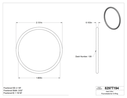 Kimyasala Dayanıklı, 3/32 (2.38 mm) Kesirli Genişlik, Dash Numarası 135