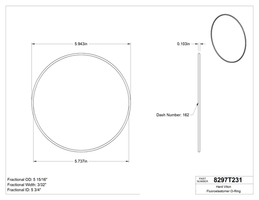 Kimyasala Dayanıklı, 3/32 (2.38 mm) Kesirli Genişlik, Dash Numarası 162