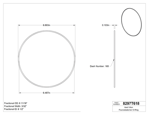 Kimyasala Dayanıklı, 3/32 (2.38 mm) Kesirli Genişlik, Dash Numarası 165