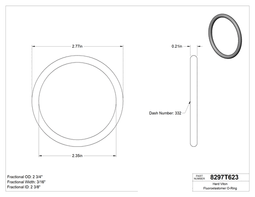 Kimyasala Dayanıklı, 3/16 (4.76 mm) Kesirli Genişlik, Dash Numarası 332