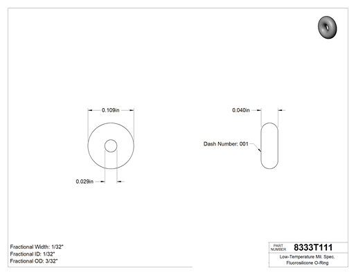 Kimyasala Dayanıklı, 1/32 (0.79 mm) Kesirli Genişlik, Dash Numarası 001
