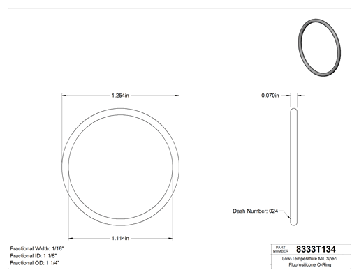 Kimyasala Dayanıklı, 1/16 (1.59 mm) Kesirli Genişlik, Dash Numarası 024