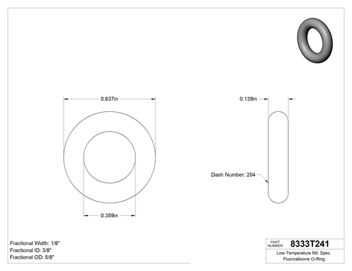 Kimyasala Dayanıklı, 1/8 (3.17 mm) Kesirli Genişlik, Dash Numarası 204