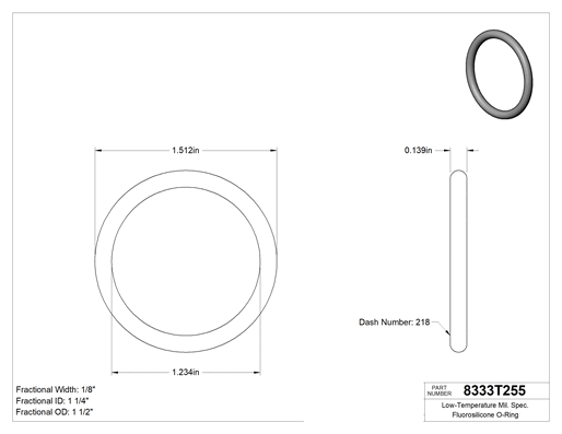 Kimyasala Dayanıklı, 1/8 (3.17 mm) Kesirli Genişlik, Dash Numarası 218